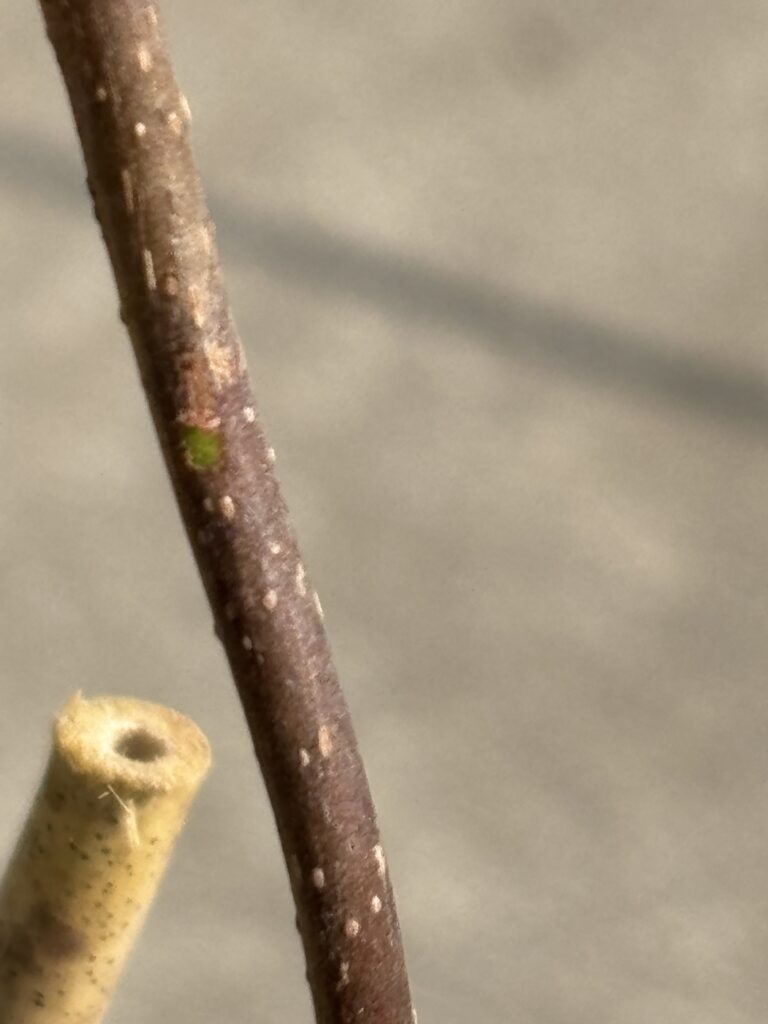 確認方法は幹の皮を薄く剥いで、緑色(生きている)、茶色(枯れている)かを見ます。